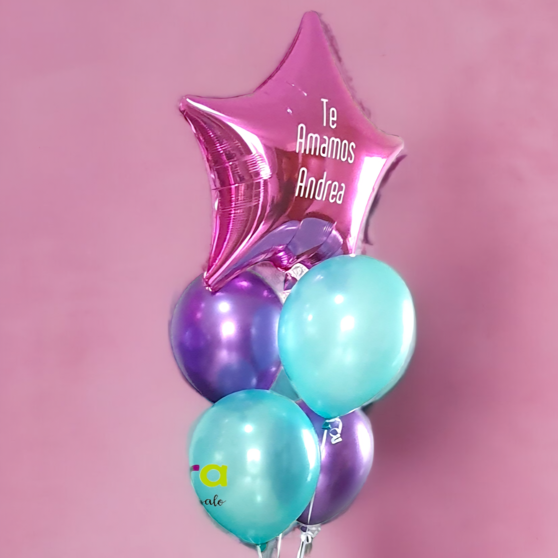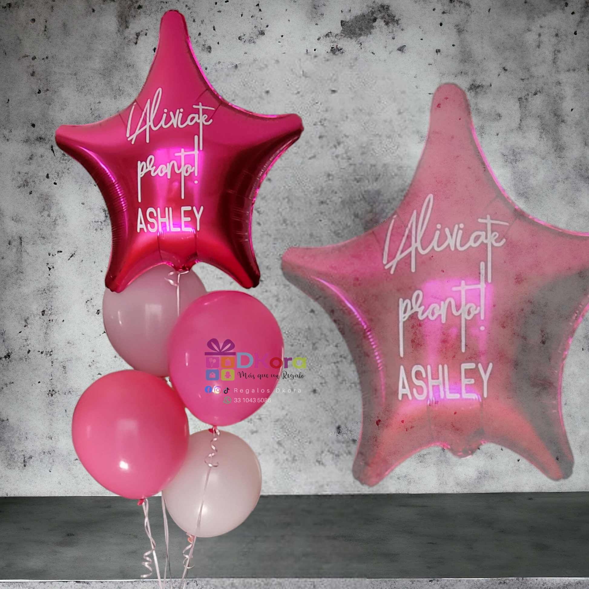 ☆ 1 Globo metálico mediano de 45 cm inflado con helio personalizado (puede ser estrella, circulo o corazón).